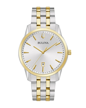 Read MoreThe classic dress watch is redefined in the Sutton two-tone timepiece. Featuring a silver-tone and gold-tone stainless steel case and bracelet with a silver white dial and a calendar window at the 6 o’clock position, a domed mineral crystal and deployant clasp closure, this stylish men’s watch is the quintessential piece for your day to evening wardrobe.