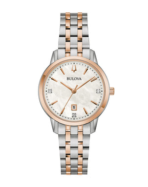 Read MoreElegance and simplicity. This new addition to the Ladies Classic collection is sure to turn heads. This timepiece features a 3-hand quartz movement, two-tone stainless-steel and rose gold-tone case and bracelet, sophisticated mother-of-pearl dial, rose gold-tone hands and indices for a luxurious and timeless look.